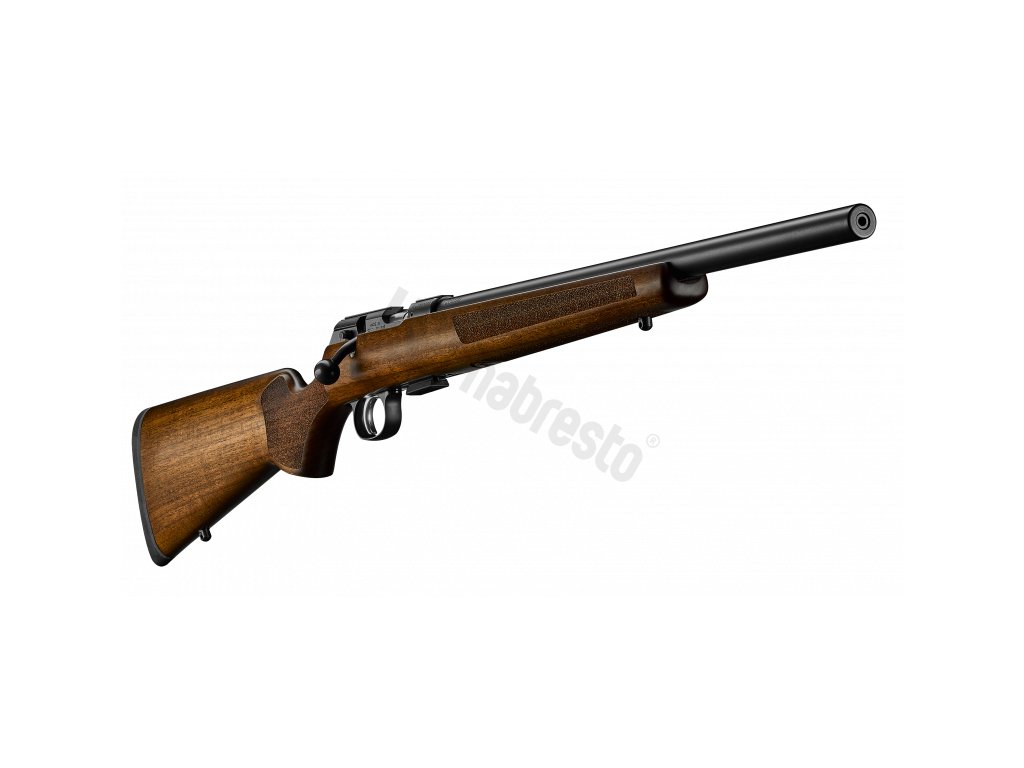 Ani v nové modelové řadě CZ 457 nemůže chybět oblíbené provedení s lakovanou pažbou typu American a těžkou 525mm hlavní, které je ideální pro přesnou sportovní a loveckou střelbu na střední i větší vzdálenosti. Pro montáž zaměřovacího dalekohledu je určena 11mm drážka na horní části lůžka.