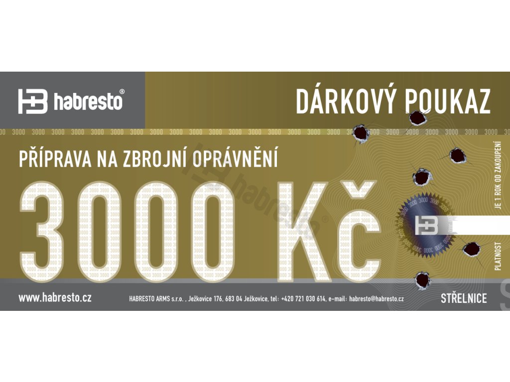 Dárkový poukaz v hodnotě 3000 CZK uplatnitelný na přípravný kurz k získání zbrojního oprávnění.