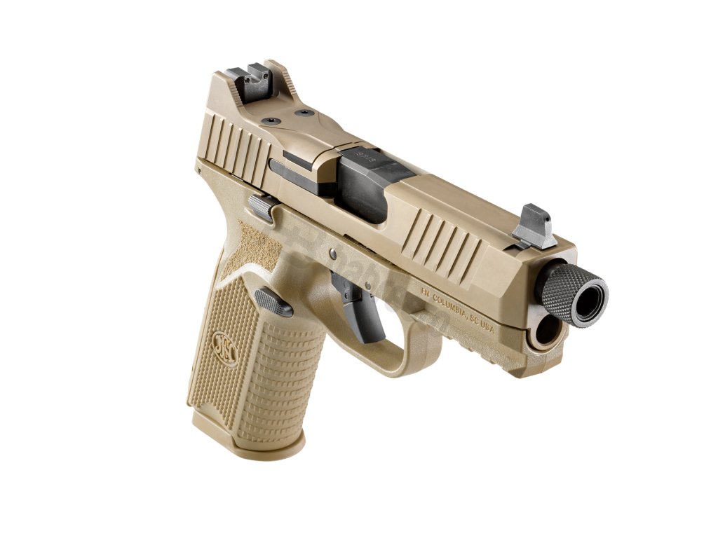 Chladně kovaná, nerezová hlaveň FN o délce 4,5 palce (11,43 cm) s cílovou korunou, závitem ½” x 28, který přijímá většinu dostupných 9mm tlumičů, a závitovou krytkou s integrovaným O-kroužkem, který zabraňuje uvolnění během použití, dokončují horní část.