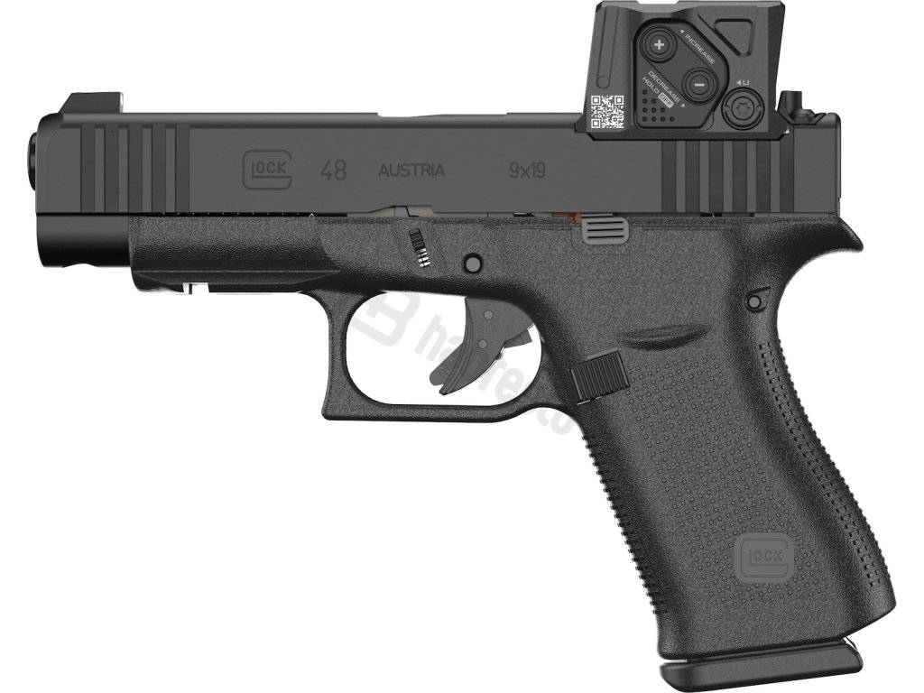 Glock 48 A-CUT je pistole velikosti SLIM v ráži 9 mm Luger v konfiguraci s kolimátorem Aimpoint COA, se závěrem s modulárním optickým systémem konstruovaným pro kolimátor Aimpoint COA.