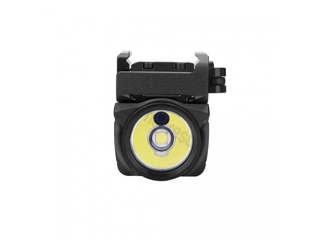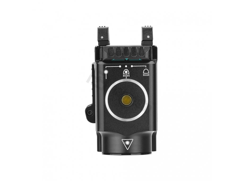 Baterku zapínáme pohodlným křídlovým spínačem umístěným vzadu. Vypínač je oboustranný, díky čemuž mohou baterku pohodlně používat praváci i leváci. Svítidlo je vybaveno schopností přepnout na pouze laser, laser a světlo nebo jen světlo.