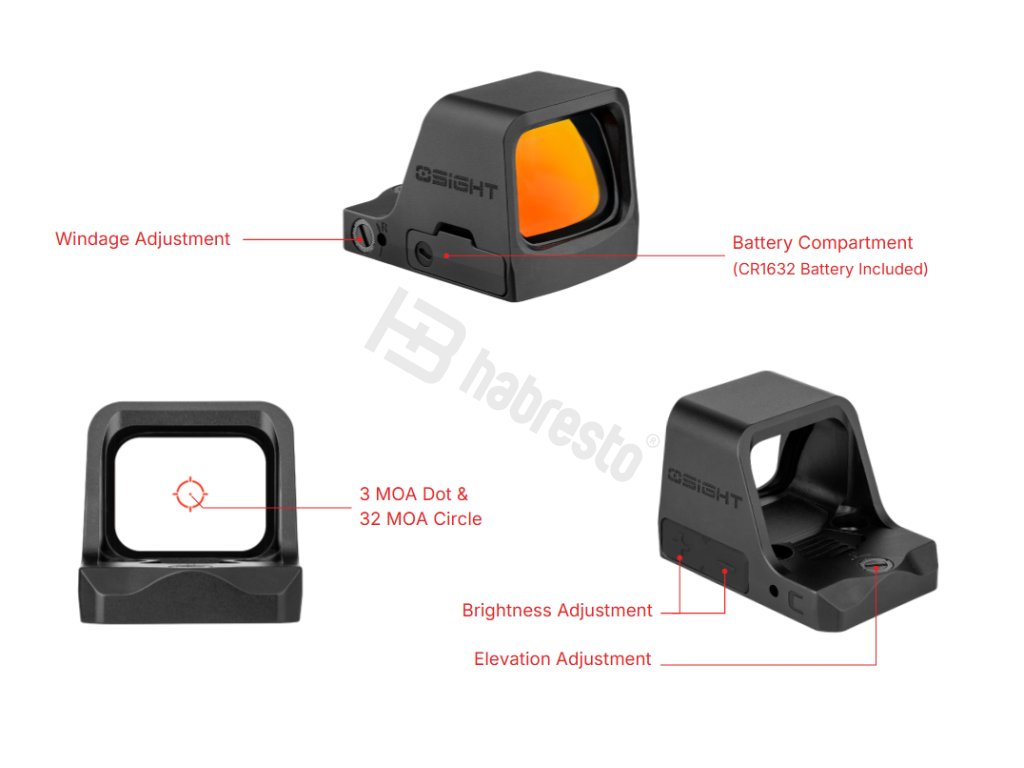 Díky standardnímu upevnění RMR (Ruggedized Miniature Reflex, neboli footprint 407c/507c) je Osight C univerzálním doplňkem pro mnoho pistolí plné velikosti i kompaktních modelů. Možnosti rozšíří i montáže Osight Picatinny, které nabízejí vysokou a nízkou variantu pro většinu pušek.