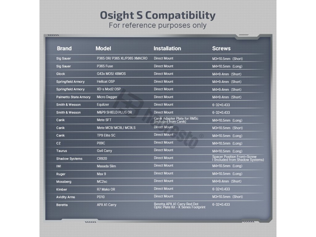 Montážní standard RMSc footprint zajišťuje širokou kompatibilitu s nejoblíbenějšími platformami ručních zbraní.
