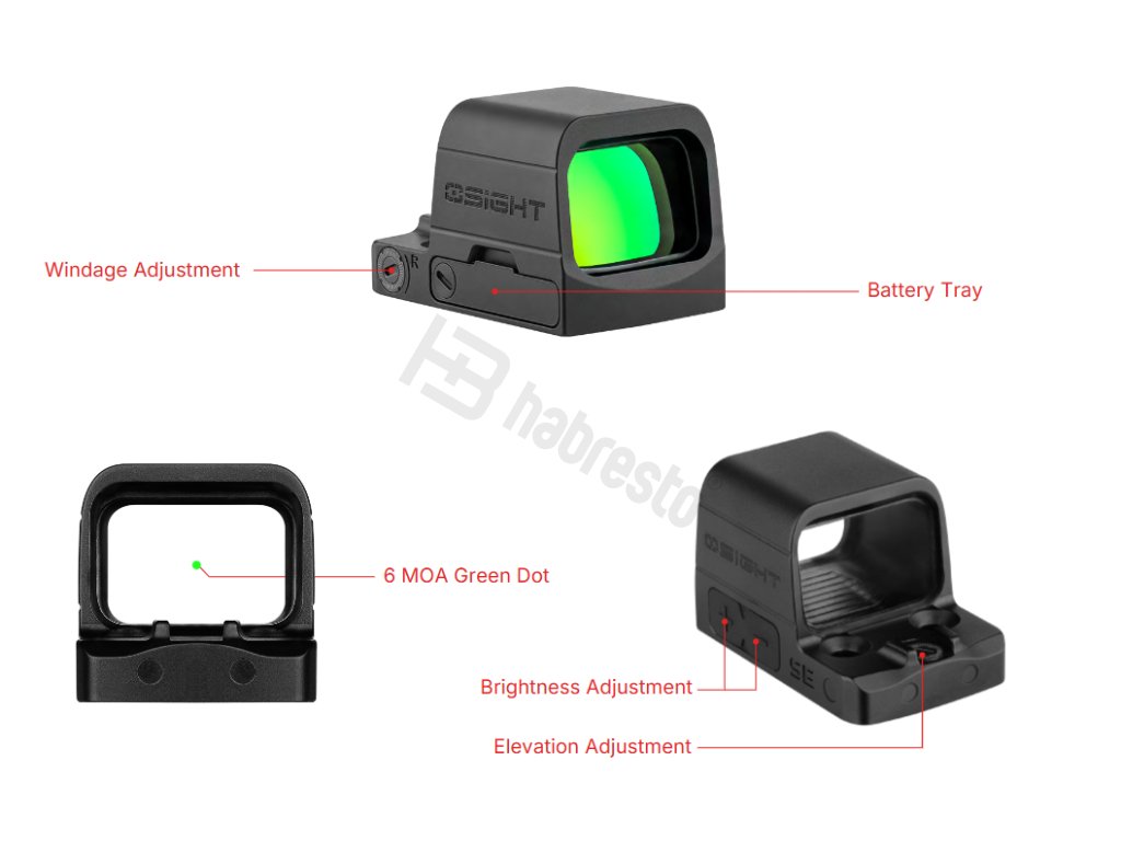 10 úrovní jasu – včetně 2 úrovní pro noční vidění – a paměťová funkce, která si pamatuje poslední použité nastavení. Osight SE 6MOA GN nabízí spolehlivý a adaptabilní výkon pro profesionály i každodenní nošení.