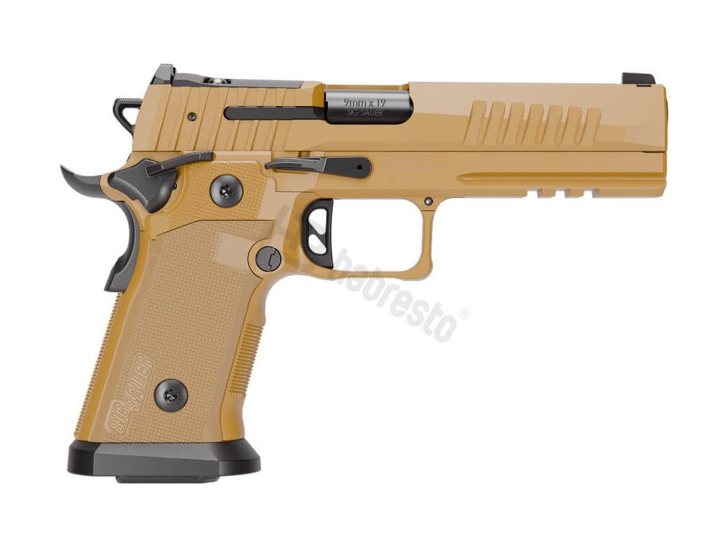 Full-size závěr SIG-LOC™ PRO (Optic-ready) v odstínu Coyote s 5" bull barrel hlavní.