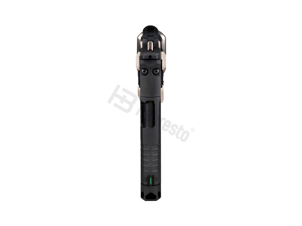 Věrni klasické linii EQUINOX, najdeme na tomto modelu leštěné nerezové akcenty na závěru a kompenzátoru, které v kombinaci s ovládacími prvky v povrchové úpravě E-Nickel vytvářejí úchvatný dvoubarevný kontrast. Zakázkové duralové střenky LOK se vzorem GridLOK dodávají pistoli nezaměnitelný vzhled a prémiový, elitní pocit při úchopu.