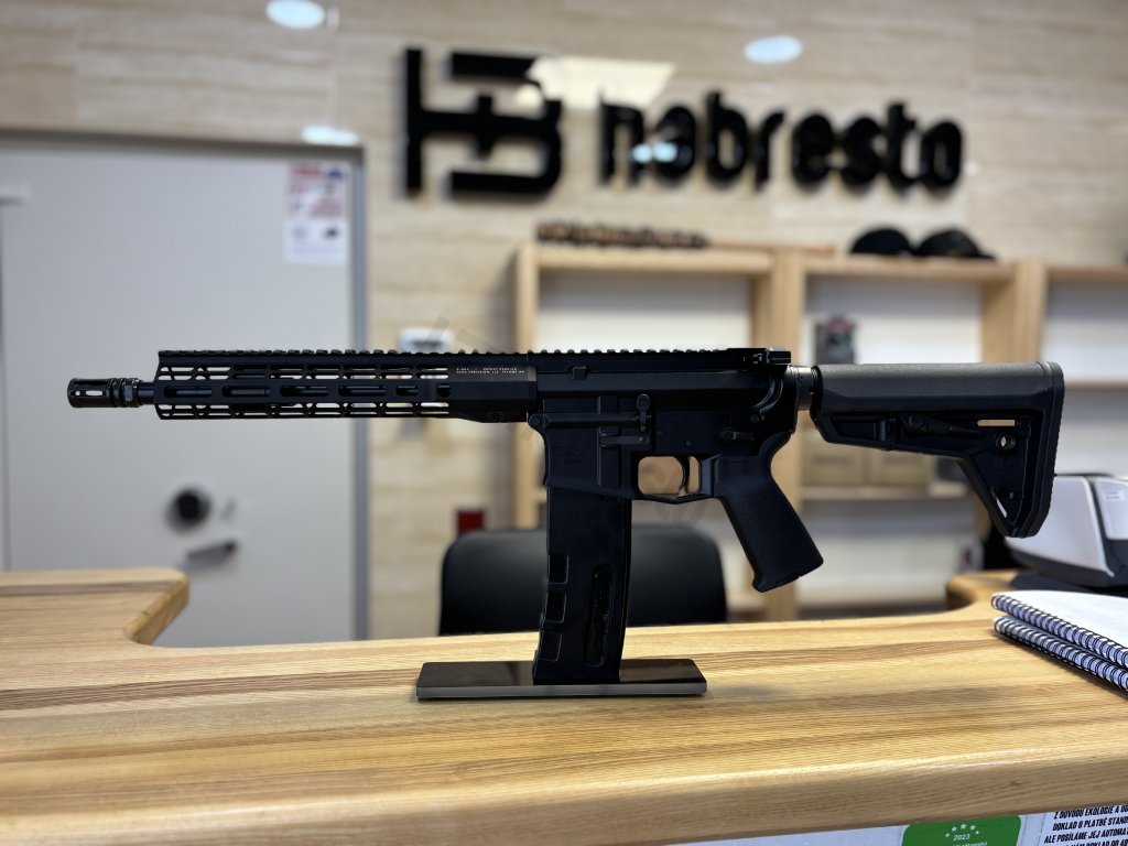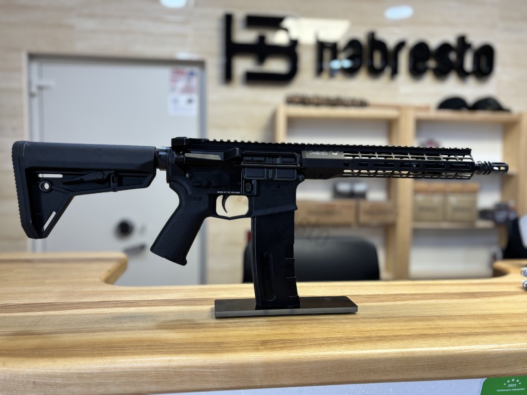 Špičková puška osazena doplňky Magpul s hlavní BA Govt. profil, předpažbí 10,3" s MLOK, plynový systém carbine