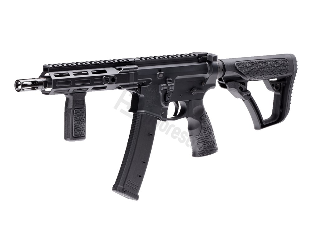 Ultra-kompaktní DD PCC (karabina na pistolové náboje) SBR je krátká puška ve stylu AR-15, která je snadno přenosná a vysoce ovladatelná. Disponuje 210mm (8,3") hlavní, která je vyráběna metodou za studena kovaného vývrtu, což zajišťuje vysokou odolnost a skvělou balistiku pro dostupné a cenově výhodné 9mm náboje. Přestože je kompaktní a lehká, nabízí široké možnosti přizpůsobení, včetně volně plovoucího 178mm (7") DD4 předpažbí s M-LOK rozhraním pro montáž svítilen, úchytů na popruh nebo vertikálního předního gripu. DD PCC SBR je připravena na široké spektrum použití – bez zbytečné hmotnosti navíc. Tato odolná a spolehlivá puška s krátkou hlavní je vyráběna a garantována společností Daniel Defense, jedním z nejdůvěryhodnějších jmen ve světě palných zbraní.