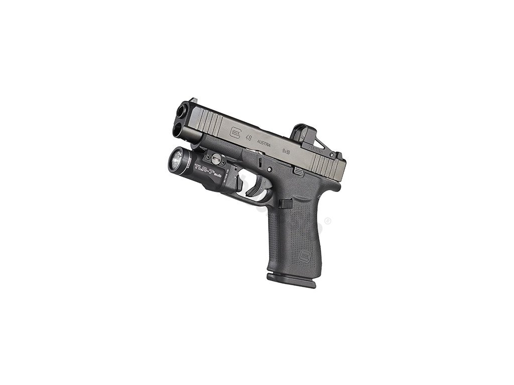Nová podvěsná svítilna TLR-7 sub je určena pro celou škálu zbraní velikosti subkompakt jako např. GLOCK®43XMOS, GLOCK®48MOS, GLOCK®43X. TLR-7 sub má světelný výkon 500 lumenů s dosvitem 140 metrů a dobou použití až 1,5 hod. Je ideálním společníkem pro rychlé zacílení za zhoršené viditelnosti např. při obraně domova a řešení taktických situací. Speciální pojistka znemožní náhodné nechtěné aktivaci a šetří baterie. Svítilna TLR-7 sub je voděodolné dle normy IPX7 (vodotěsná do hloubky 1 metru po dobu 30 sec). Ovládání zajišťuje oboustranný spínač jak momentového, tak stáleho světla. Dále je možnost použití stroboskopu (lze při přeprogramování svítilny vypnout). Funkce bezpečného vypnutí svítilny zabrání nechtěné aktivaci svítilny např. při přepravě v zavazadle, šetří se tím baterie. Díky precizní optice vytváří úzký paprsek světla s optimálním periferním osvětlením. Napájena je jednou CR123A baterií (je součástí balení). Nízkoprofilový design, lehké tělo vyrobené z eloxovaného leteckého hliníku. Díky speciálnímu mechanismu pro uchycení na lištu lze jednoduše připojit nebo odpojit bez nutnosti používat jakékoliv nářadí nebo nebo manipulovat s rukama před hlavní.